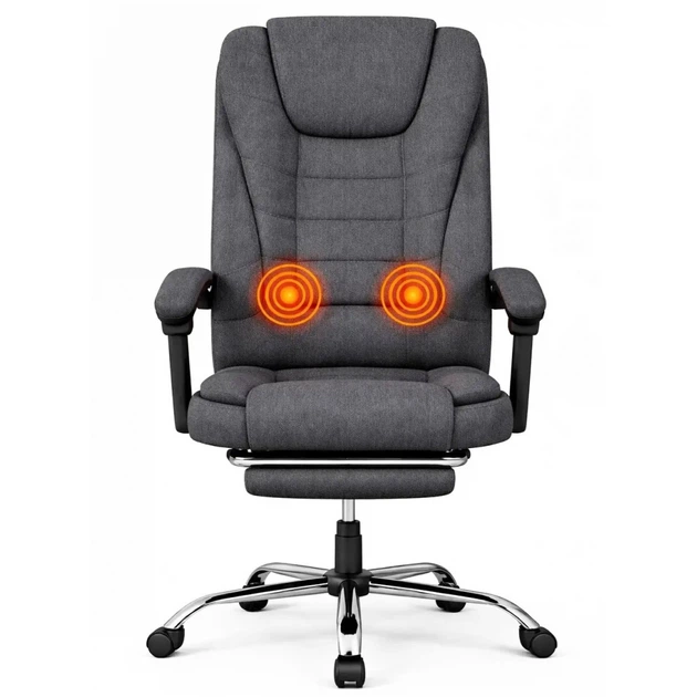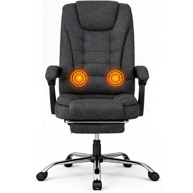 Офісне крісло BOSS KO22 Premium з масажем, до 130 кг, з висувною підставкою для ног, ергономічне, тканина, темно-сіре