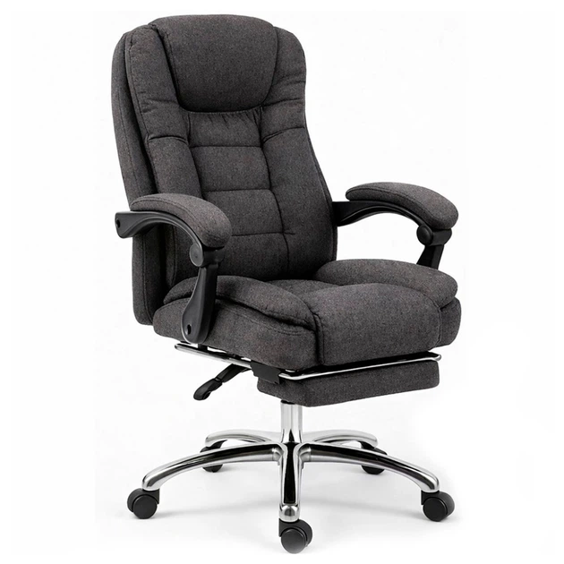 Офісне крісло BOSS KO22 Premium з масажером, висувна підставка для ніг, тканина, темно-сіре