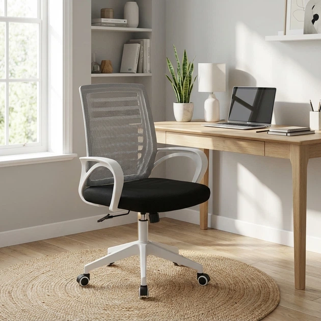 Ергономічний комп’ютерний стілець з газліфтом, чорний — з сітчастою спинкою та підлокітниками