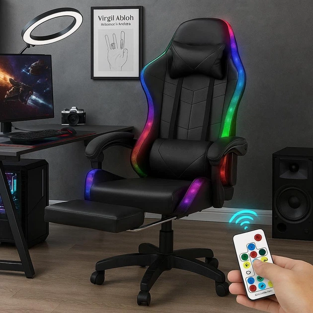 Ігрове геймерське крісло комп'ютерне з підсвічуванням + пульт + підставка для ніг (2 подушки, Поворот на 360 °)
