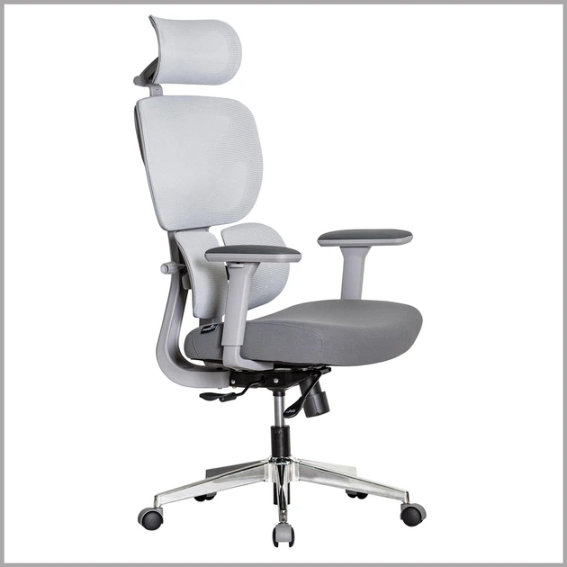 Ігрове спортивне крісло із тканини Deus Сіро-біле комп'ютерне крісло для геймерів та роботи