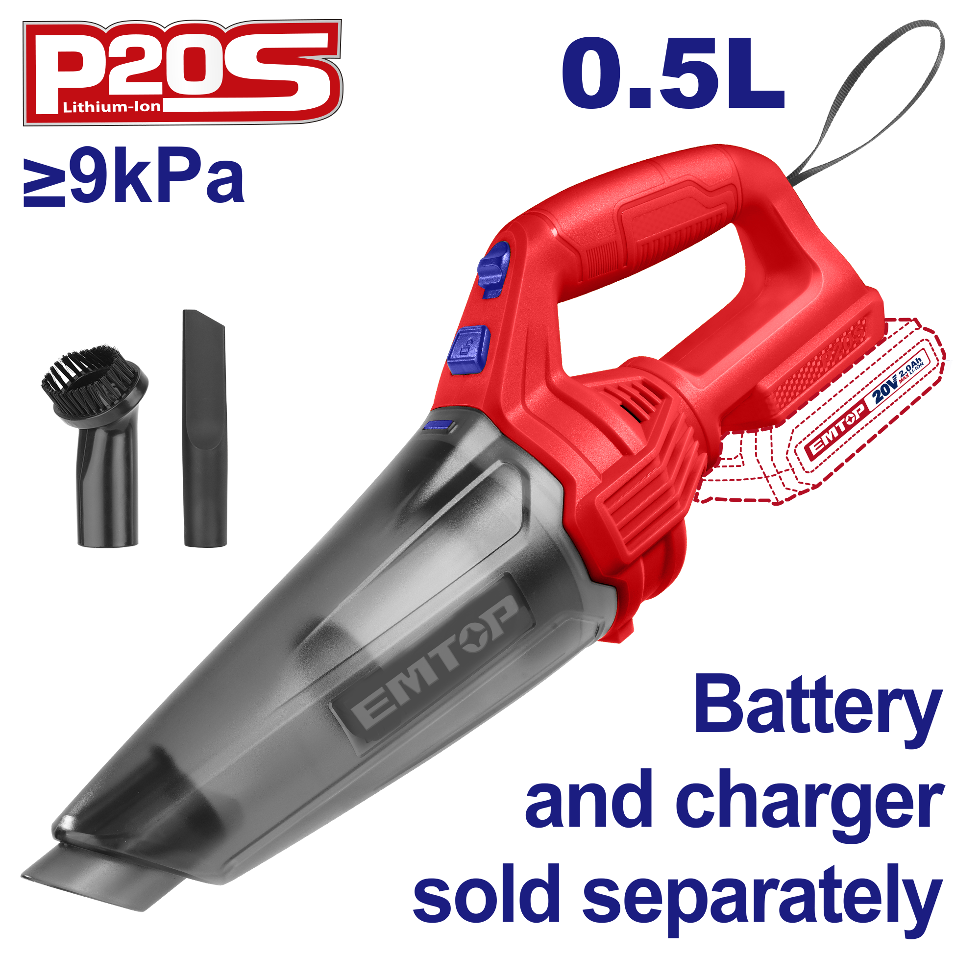 - Напруга: 20 В - Ємність для пилу: 0,5 л - Тиск вакууму: ≥9kPa - Вага (нетто): 1,1 кг - Вага (брутто): 1,26 кг