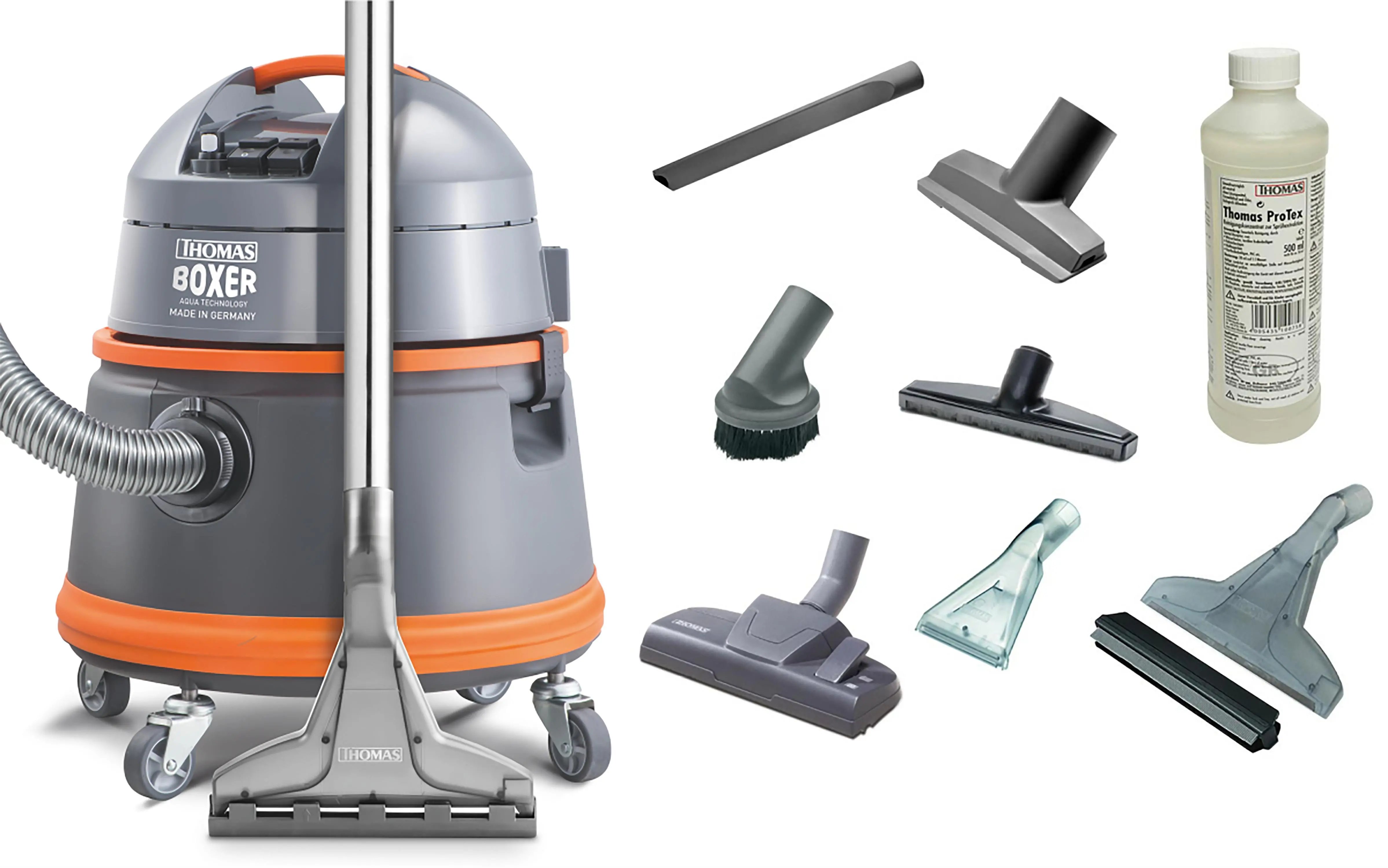 Пилосос Thomas Boxer у сірому кольорі — універсальний та високоефективний помічник для будь-якого дому. Завдяки потужності 1400 Вт він швидко справляється з різноманітними забрудненнями, включаючи пил, бруд, шерсть тварин та рідкі речовини, що робить його ідеальним для прибирання як сухих, так і мокрих поверхонь. Вбудована функція збору води та можливість очищення килимів і меблів