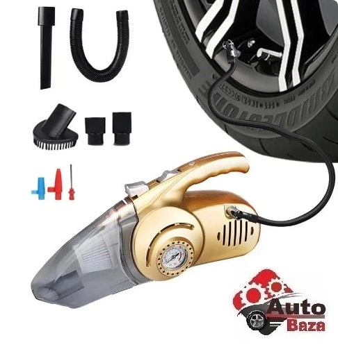 Автомобільний пилосос з компресором 4в1 Vacuum Cleaner компактний з манометром насадками та підсвічуванням