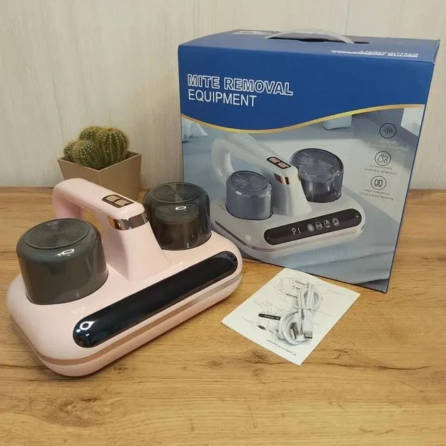 Бездротовий пилосос очисник від кліщів, 100 Вт 12 В 5 В/2 А з ультрафіолетовою стерилізацією та HEPA-фільтром, рожевий
