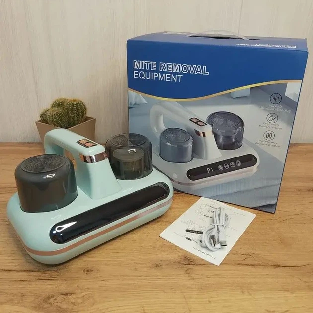 Бездротовий пилосос очисник від кліщів, 100 Вт 12 В 5 В/2 А з ультрафіолетовою стерилізацією та HEPA-фільтром, зелений