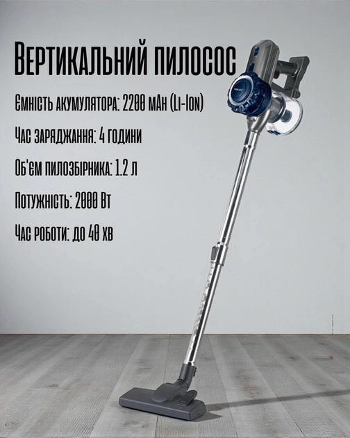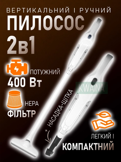 Пилосос автомобільний "VOIN" V-88CL 90W/7.4V/АКБ-2х2000mAh/2 режими/вологе та сухе чищення/сумка