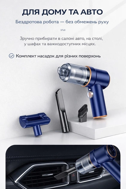 Пилосос автомобільний акумуляторний бездротовий 8кПа LT-101C портативний