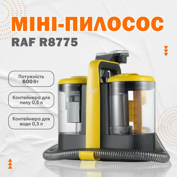 Універсальний миючий пилосос плямовивідник RAF R8775 для килимів, текстилю, меблів та автомобіля, Чорний (RAF005)