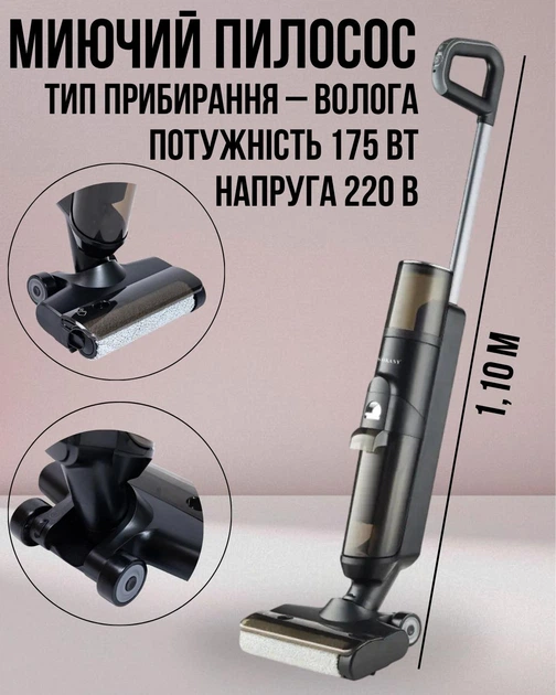 Вертикальний миючий пилосос акумуляторний для вологого та сухого прибирання легкий 175 Вт (523501)