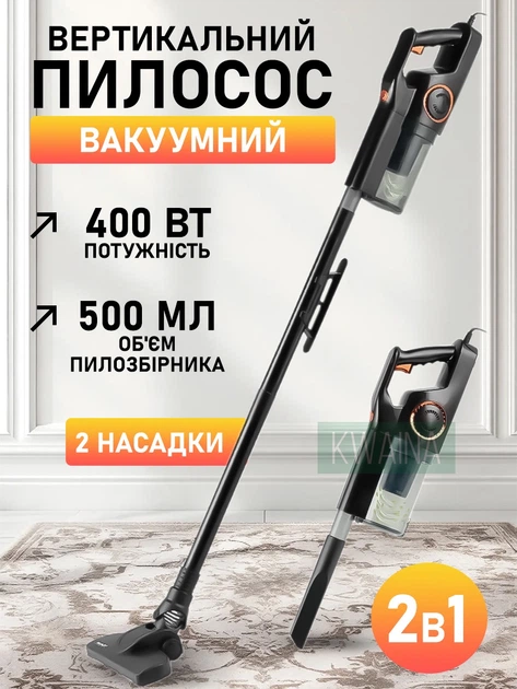 Вертикальний вакуумний пилосос трансформер 2в1 з HEPA-фільтром для швидкого прибирання, працює від мережі , Чорний