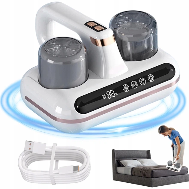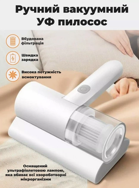 Ручний акумуляторний пилосос для очищення м'яких меблів, ліжка, матраців, подушок та килимів від пилового кліща