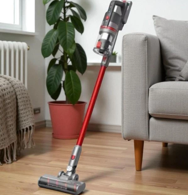 Aкумуляторний бездротовий пилосос Rainberg, 2500 Вт, з HEPA фільтром та LED-підсвіткою, Червоний (6922)