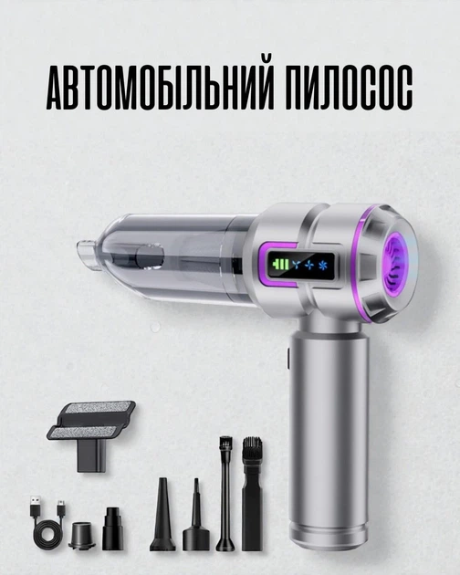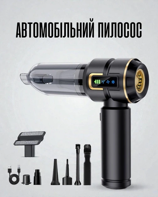 Пилосос автомобільний потужний бездротовий акумуляторний, 4 насадок