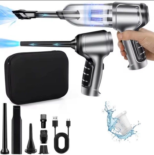 Пилосос автомобільний портативний акумуляторний з функцією видування, USB-зарядкою та насадками, потужний бездротовий, 120 В