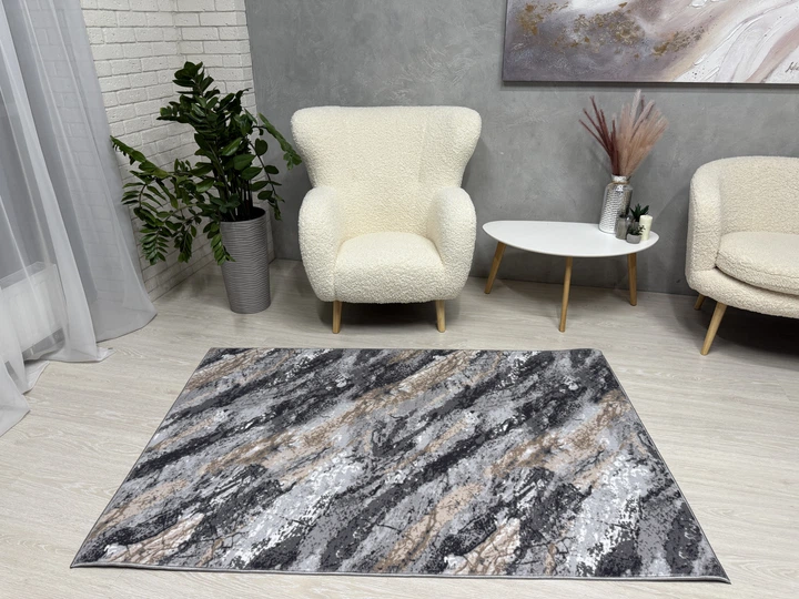 Килим з прогумованою основою Soft 1.6х2.3 м. Сірий з бежевим 1478-4