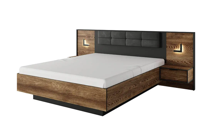 Lagom Кровать Стокгольм без ПМ и 2-мя тумбами Огненный каштан, Антрацит, 160x200