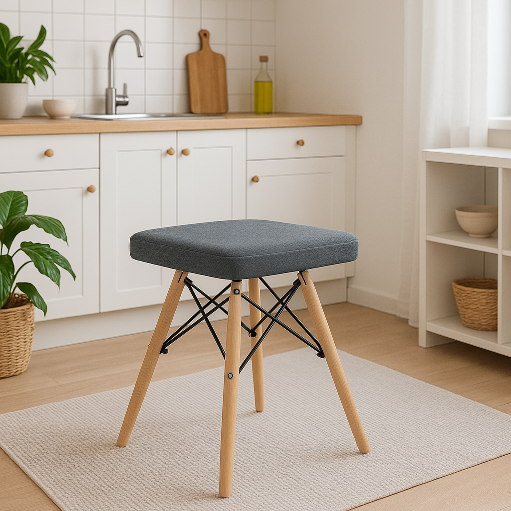 Табурет Leobert Werk квадратний сірий з дерев'яними ніжками для кухні вітальні