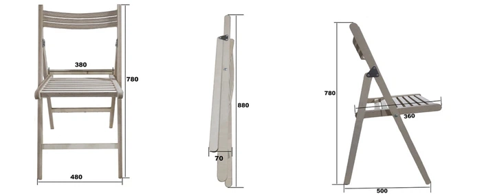 Висота стільця: 83; Матеріал каркасу: дерево; Опора: ніжки під кутом; Спинка: відкрита; Розміри сидіння (см): 43x40; Матеріал сидіння: дерево; Форма сидіння: квадратна; Призначення: складаний