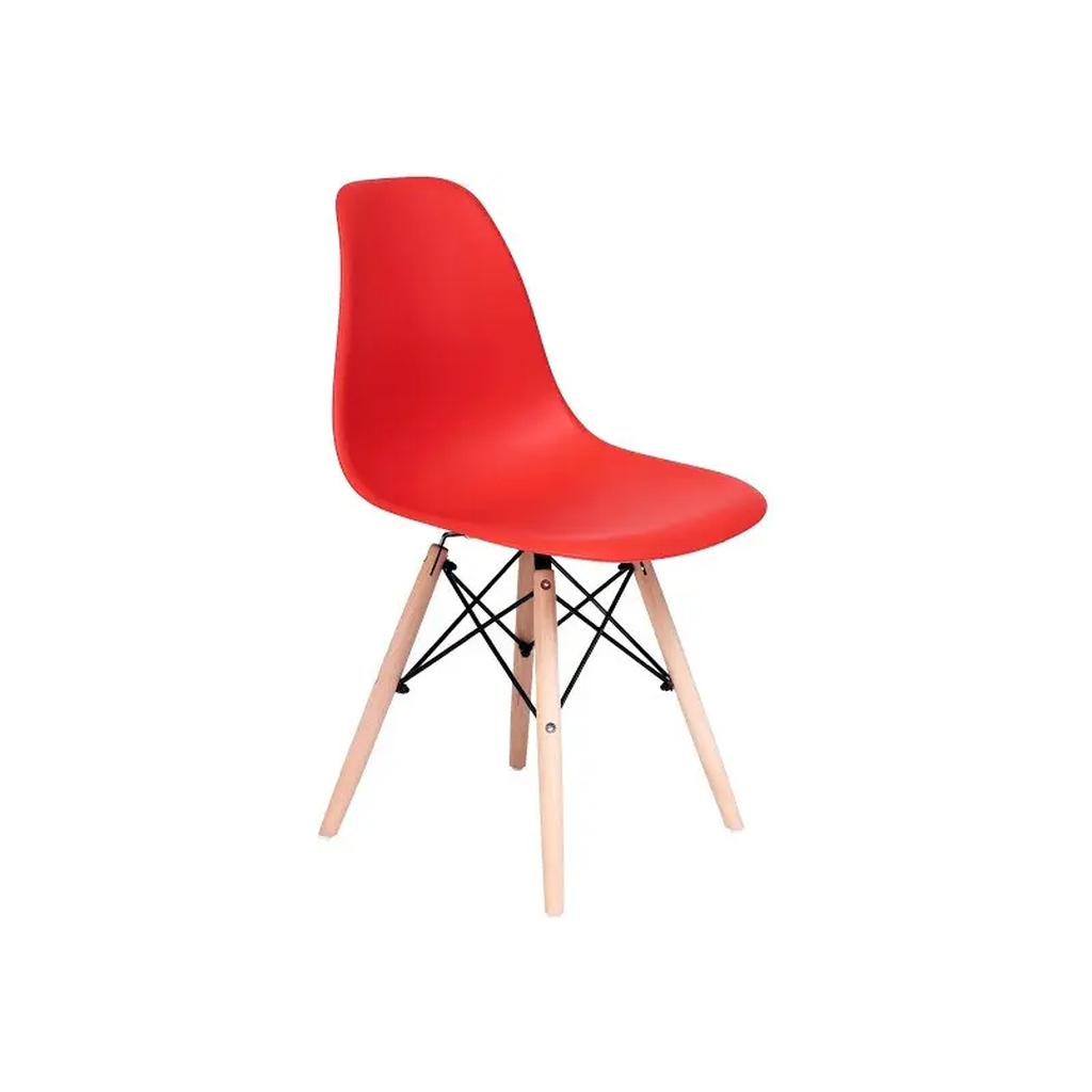 Вага (кг): 4; Максимальне навантаження (кг): 100; Висота стільця: 83; Матеріал каркасу: дерево; Опора: ніжки під кутом; Висота спинки: 40; Спинка: суцільна (закрита); Висота сидіння (см): 43; Розміри сидіння (см): 44x39; Матеріал сидіння: пластик; Форма сидіння: кокон; Призначення: класичний