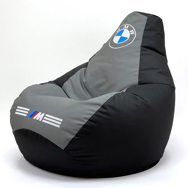Крісло мішок Elegant 130 см х 90 см чорний + сірий BMW + подушечка Flex Oksford
