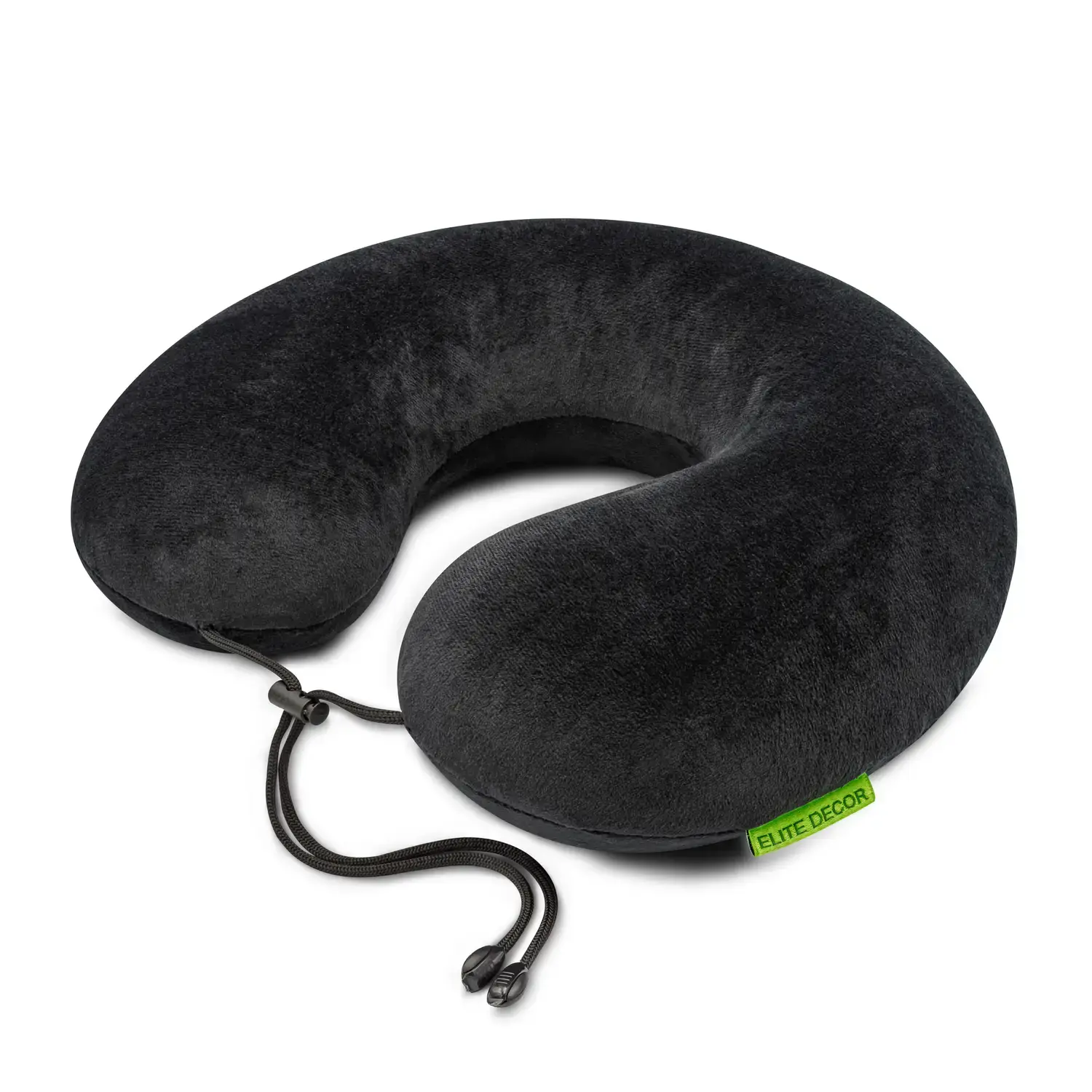 Дорожня подушка для шиї ортопедична автомобільна з фіксатором з «ефектом пам'яті» (Memory foam) ELITE DECOR PMF 001-3 Чорна