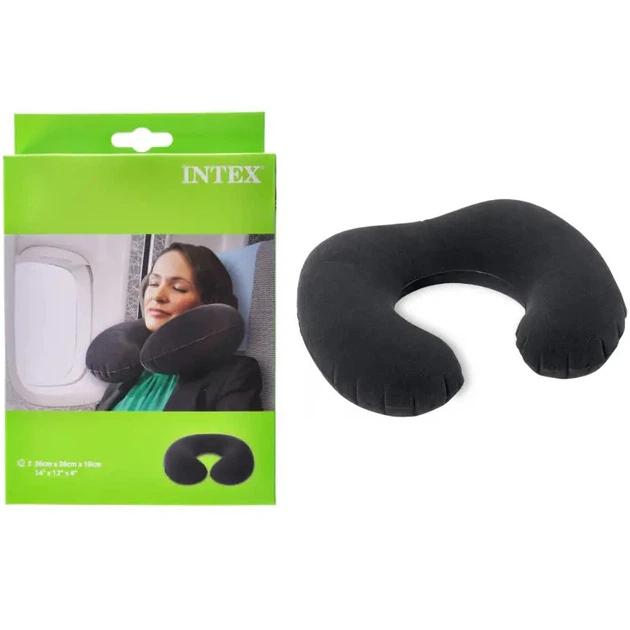 Подушка-підголівник надувна Intex чорна, дуга, велюр