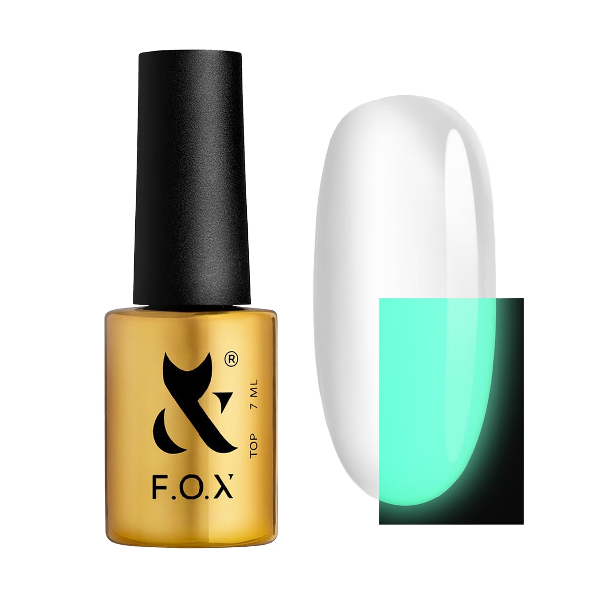 Люмінeсцентний топ для гель-лаку F.O.X Luminous Top, Green, 7 мл