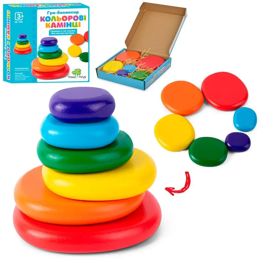 Дерев’яна іграшка Балансир камінці, 11 шт., 21.5x14.5x4.5 см