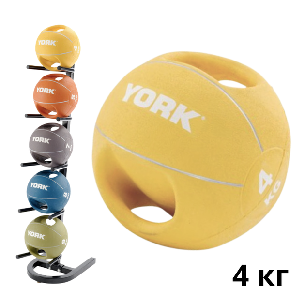 М'яч медбол 4кг York Fitness із двома ручками, жовтий