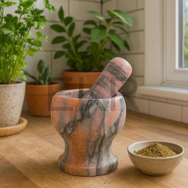 Ступка кам'яна з товкачем Сіро-Рожева FRU-059