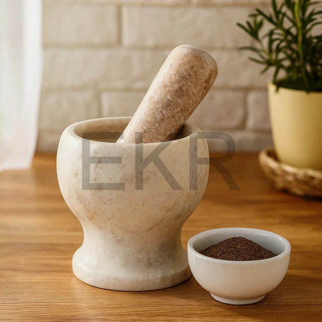 Ступка кам'яна з штовхачем Бежева FRU-059