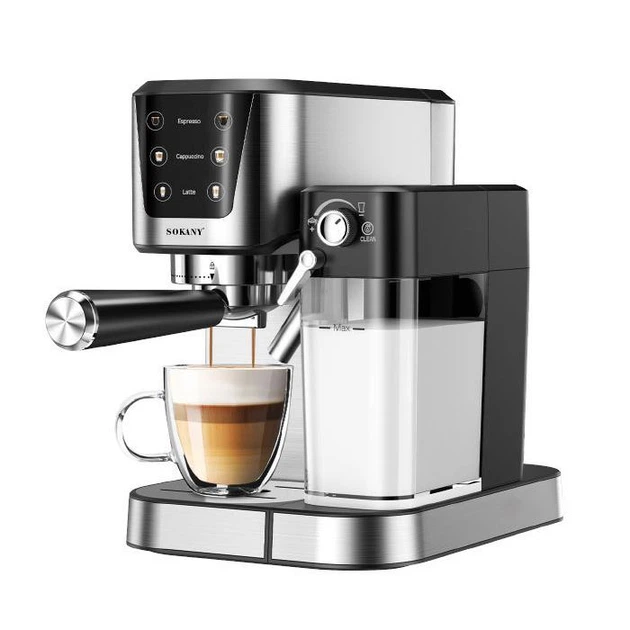 Рожкова кавоварка Sokany з функцією збивання молока кавомашина з капучинатором для приготування еспресо, капучіно та латте (