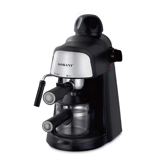 Рожкова парова кавоварка Sokany з функцією пари та спінювання зі скляною колбою кавоварка для еспресо, капучино (S8510)