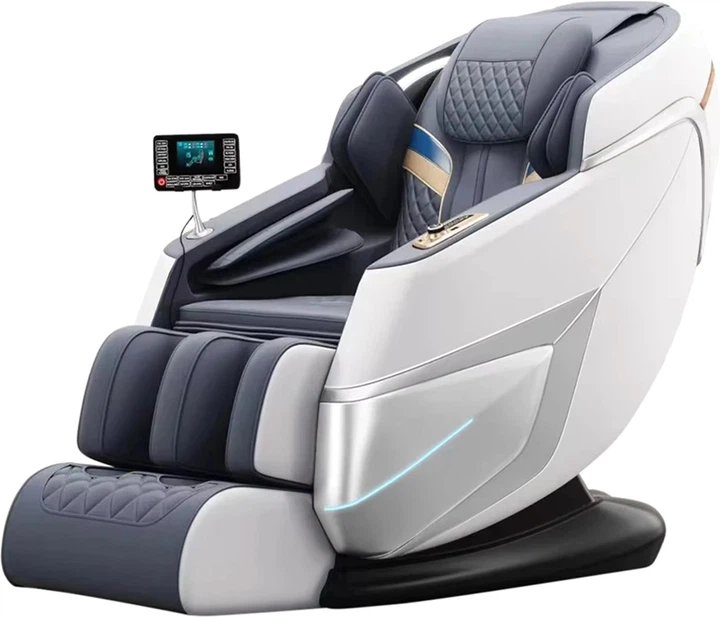 Крісло для відпочинку з масажем VX MAX у сіро-білому кольорі Бажаєте відчути себе в ексклюзивному СПА-салоні, не виходячи з дому? Представляємо масажне крісло VX MAX-елегантне поєднання сучасного дизайну та розкішного відпочинку. Це не тільки предмет меблів, а й ваш власний оздоровчий центр. Що відрізняє масажне крісло VX MAX? сіро-біла оббивка зі штучної шкіри; вбудована функція