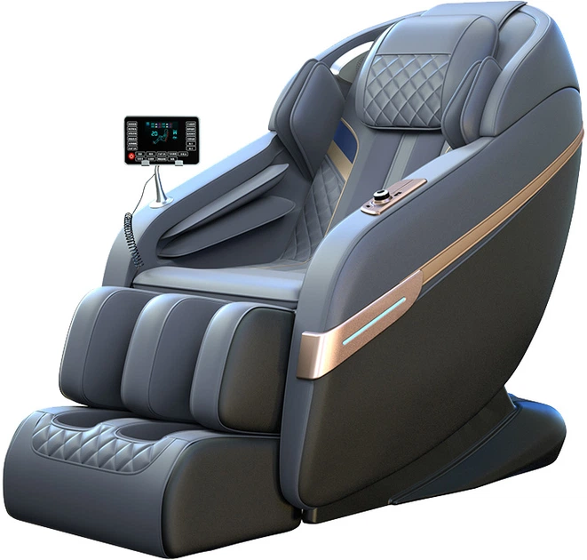 Функції - вібраційний масаж, поплескувальний масаж, розминальний масаж, Максимальне навантаження - 200 кг, Матеріал оббивки - штучна шкіра, Максимальний зріст - 200 см, Регулювання - кут нахилу підніжки, Додаткові характеристики - автоматичні програми, Матеріал корпусу - дерево, Колір - сірий