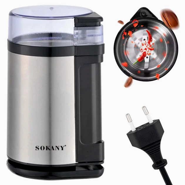 Електрична кавомолка ножова 180Вт 75г для кави та спецій Sokany SM-3001S срібляста