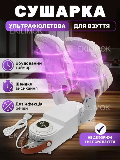 Сушарка для взуття ультрафіолетова електросушарка з таймером до 120 хвилин для швидкої сушки черевиків шкарпеток шапок рукав
