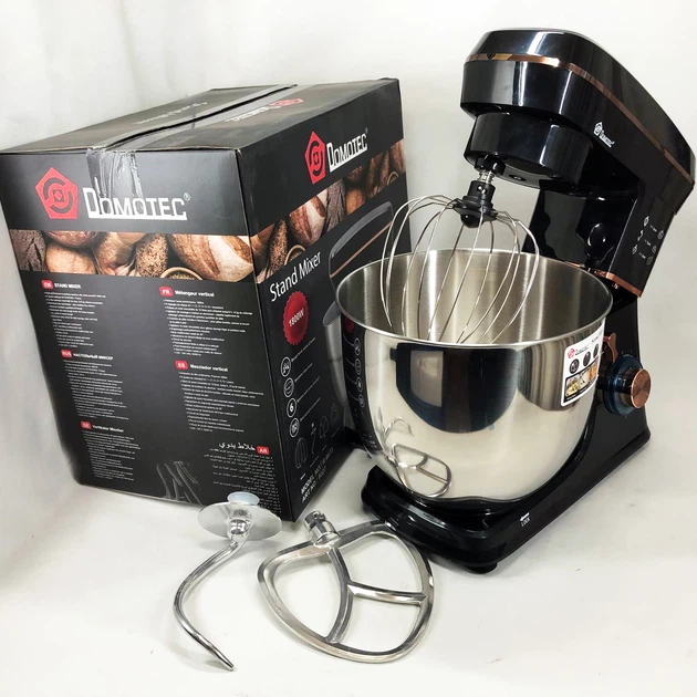 Кухонний планетарний міксер тістоміс з чашею на 4л з трьома насадками та потужністю 1500Вт Domotec 368S