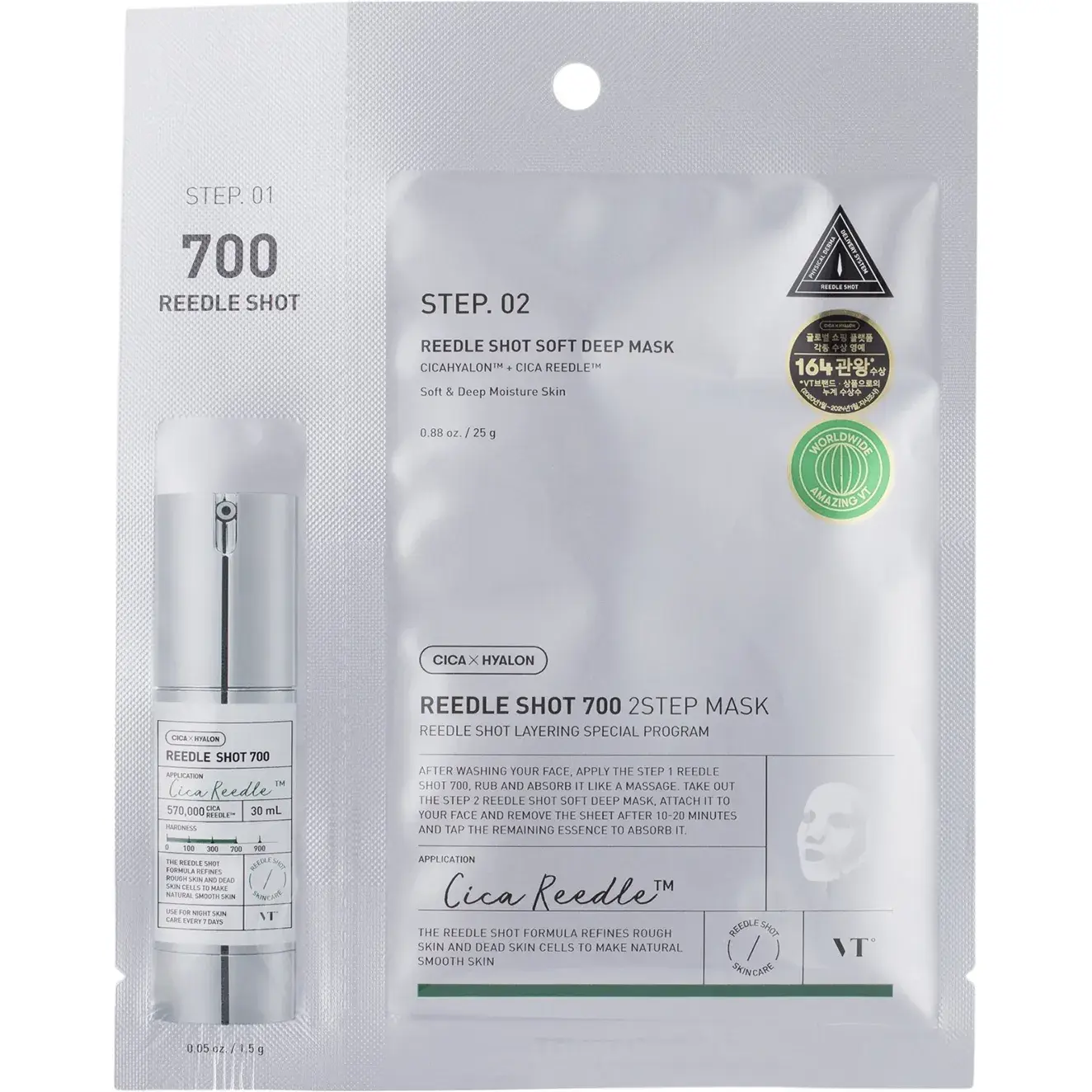 Двоетапна зміцнювальна тканинна маска для обличчя VT Cosmetics Reedle Shot 700 2Step Mask 1.5 г +25 г