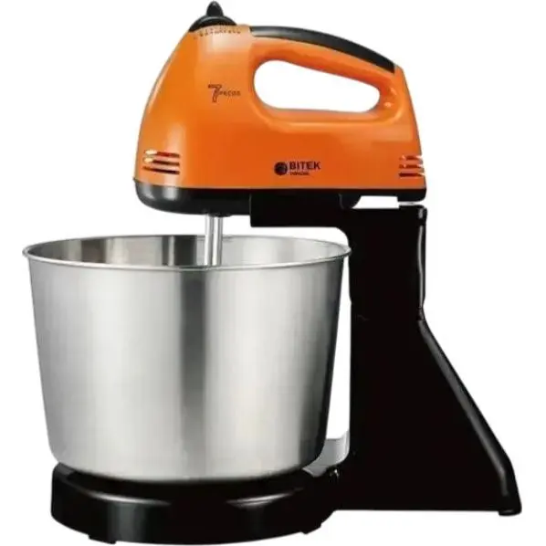 Стаціонарний міксер Bitek з металевою чашею з насадками для тіста 7 швидкостей BT-6637B 250 Вт Помаранчевий