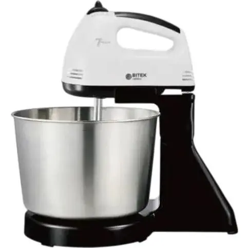 Стаціонарний міксер Bitek з металевою чашею з насадками для тіста 7 швидкостей BT-6637B 250 Вт Білий