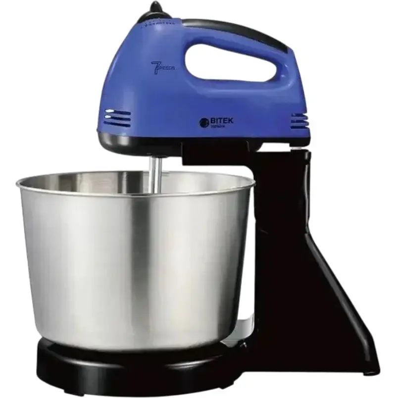 Стаціонарний міксер Bitek з металевою чашею з насадками для тіста 7 швидкостей BT-6637B 250 Вт Синій