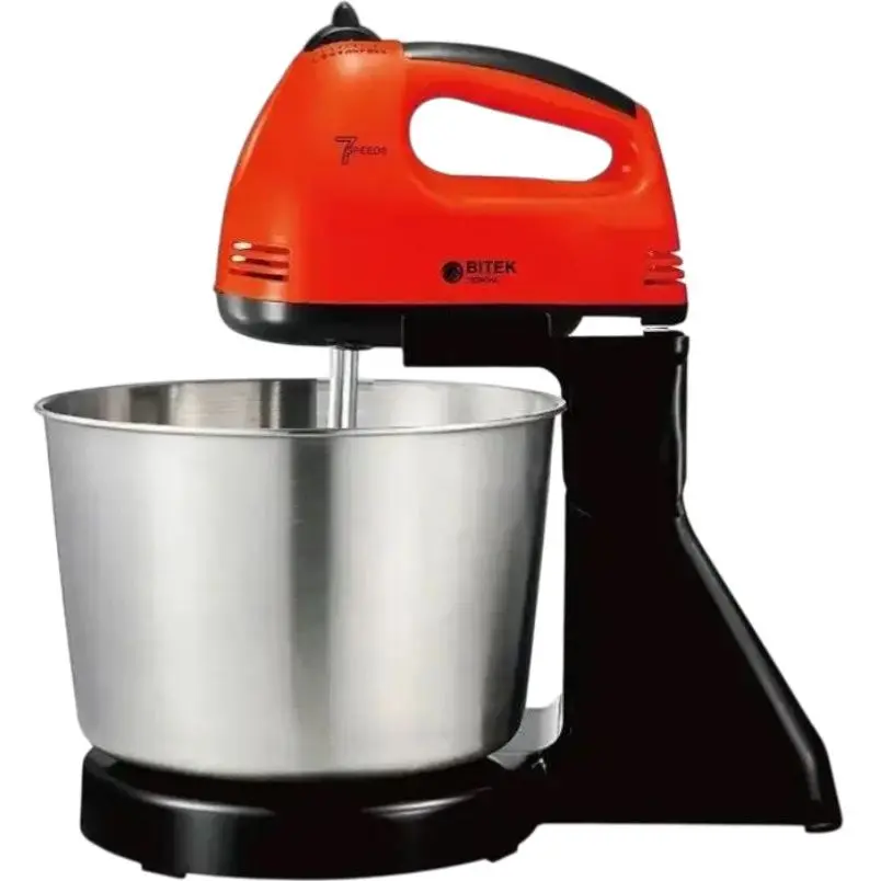 Стаціонарний міксер Bitek з металевою чашею з насадками для тіста 7 швидкостей BT-6637B 250 Вт Червоний