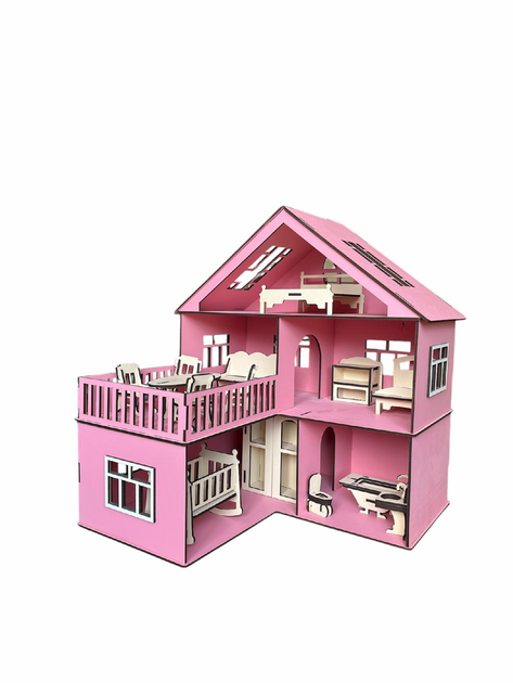 Будинок для ляльки Бежевий з рожевими меблями 14шт 550-1039-1