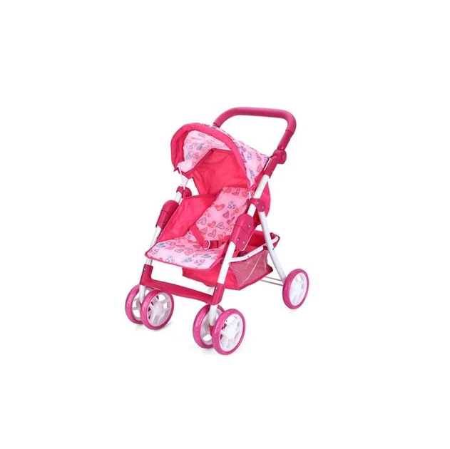 Коляска MELOGO для ляльки з кошиком прогулянкова рожева із сердечками (9352/011-PNBLS)