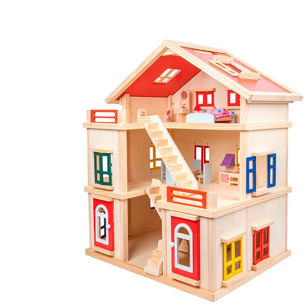 Великий ляльковий будиночок для ляльок та іграшок з меблями, дерев'яний (MD 0163)