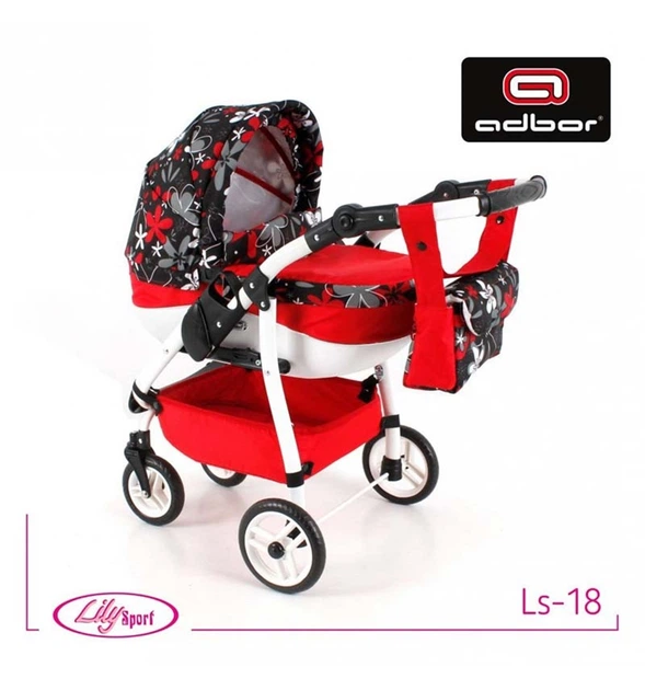 Іграшкова лялькова коляска Adbor Lily Sport 18 дитяча іграшкова коляска для ляльки, дитяча коляска Adbor Lily з сумкою і кош