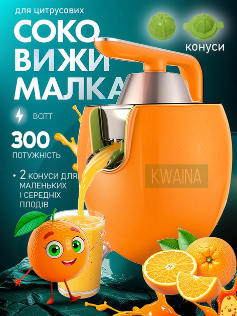 Електричний соковитискач для м'яких фруктів (цитруси, виноград, ківі, манго) потужність 300 Вт, компактне, легке очищення, П