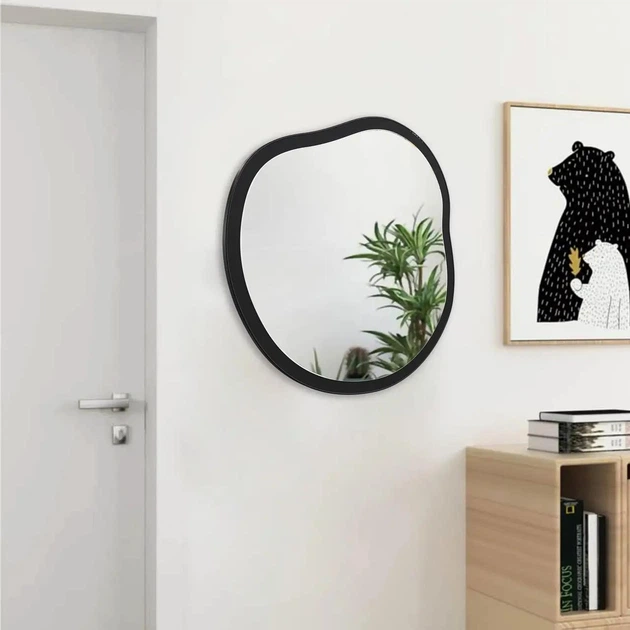 Асиметричне дзеркало на стіну вологостійке Лайн Аня 50х70 см колір чорний